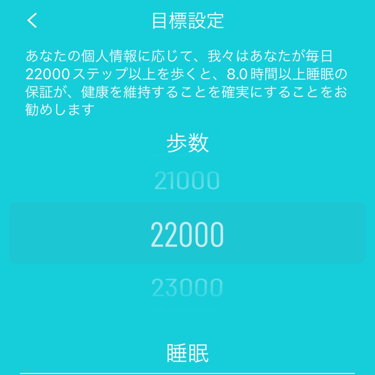 目標設定については提案はしてくれますが健康な人でもないとわりと無茶な目標立てようとするので、あくまで目安にした方がいいです。私の場合1日2万歩以上を目標に指定されてファっ!?ってなりました🫨