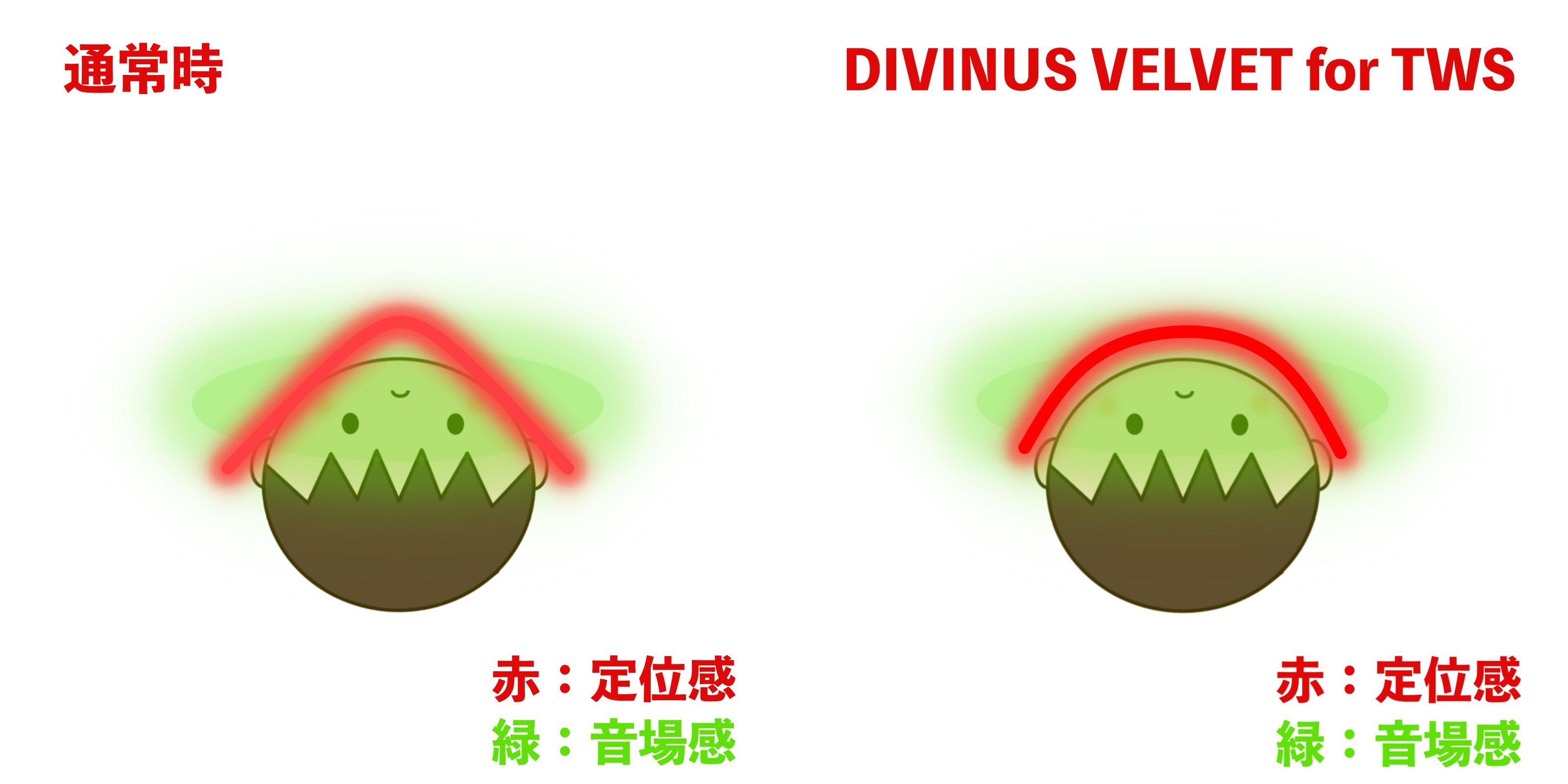 なんとなく音場も狭く感じる?って思ったのですが、どうも聴いていると狭くなったというより音場が楕円形から円形になったような均一な距離感にも感じられました。そのためか音の移動がとても滑らかに動く感じがします。顔の周りをぐるぐる回るような音の移動がより細かく感じられて、まるで画面のフレームレートが上がったかのような滑らかさを感じました。